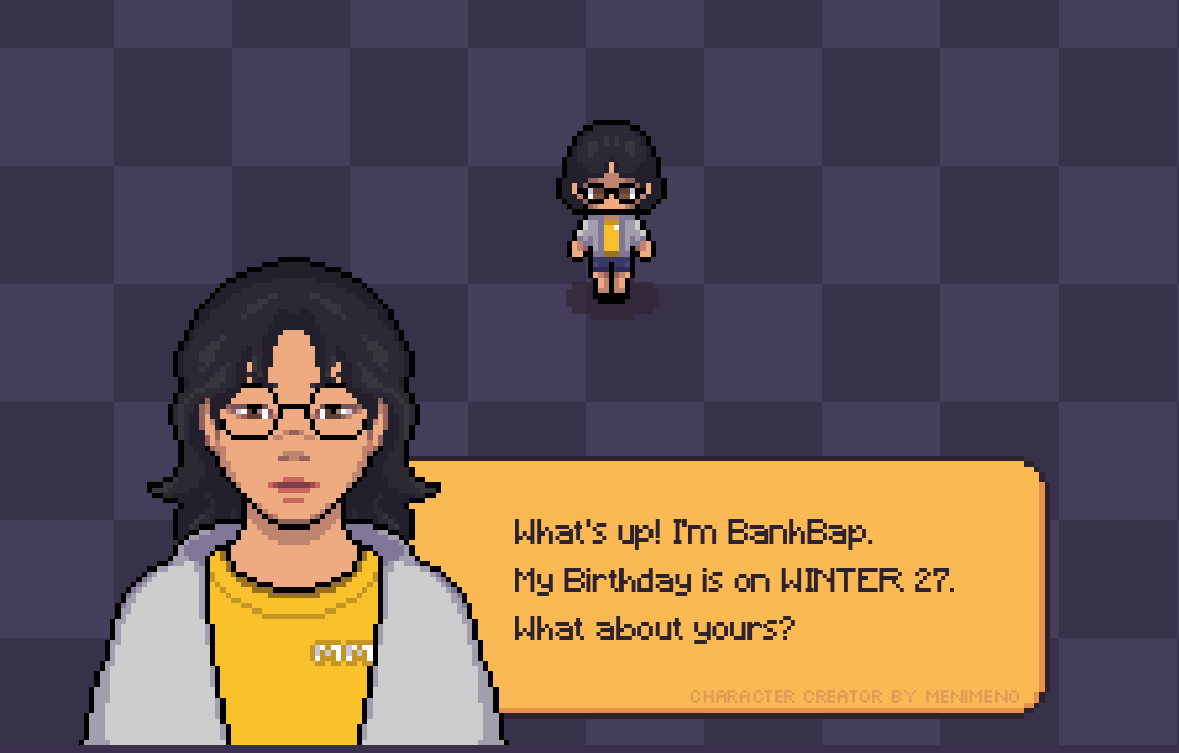 I know it's probably Stardew Valley inspired but please let birthdays go up to 31 days. If spring 00 can exist then 29, 30 and 31 can do Otherwise it's lovely game. I had fun making myself there.